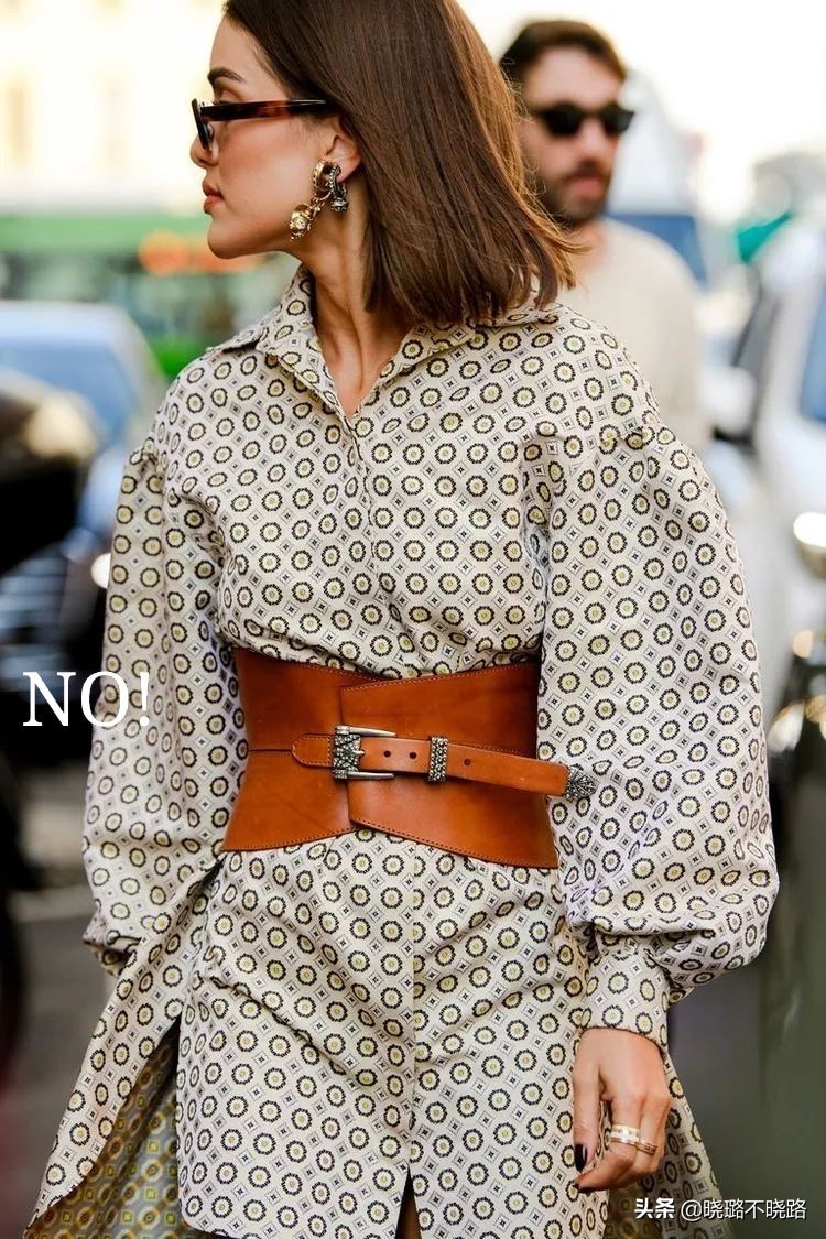 像时尚博主们特别爱尝试的宽腰封,很适合秀场,对普通人来说可不那么适合!一定要避开,尤其是腰不够细、个子不够高的女性。