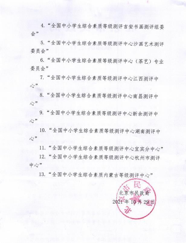 2021年7月,北京市民政局接到民政部转来“全国中小学生综合素质等级测评中心”涉嫌非法社会组织的线索,立即对其开展立案调查。