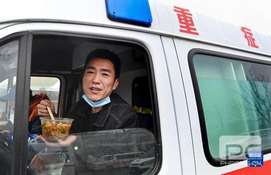 1月8日,来自河南的救护车司机吃上“爱心餐”。